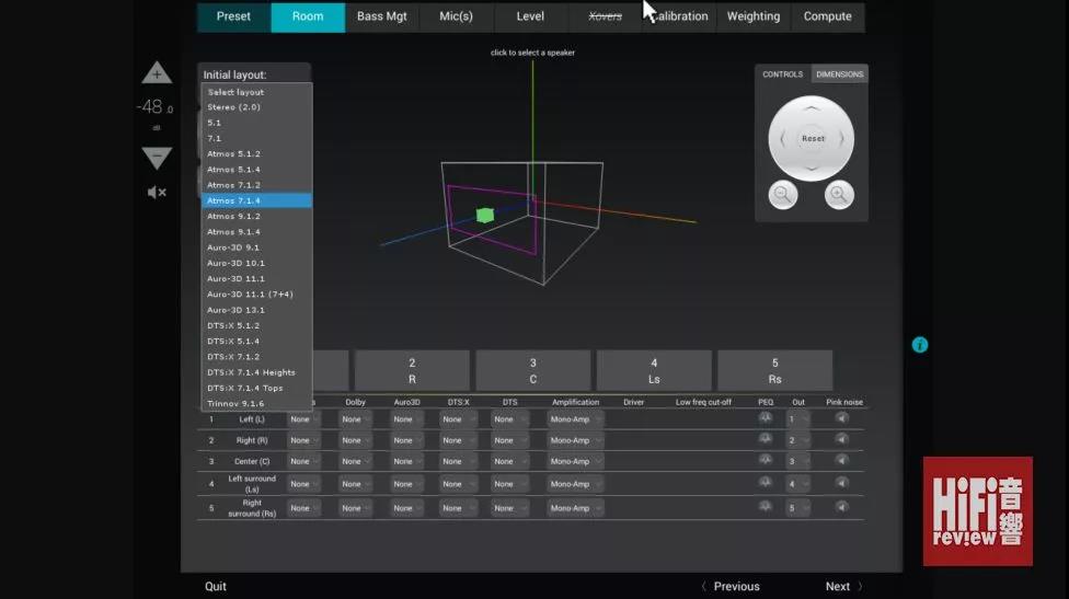 ▲ Trinnov 的聰明之處,就是即使前級與后級的配置錯誤,也可以改動版面的配置進行修正,例如本來是計劃以 2 作為中置聲道,現直接在這個版面改為 3。